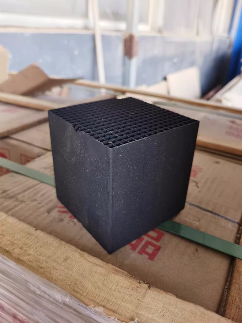 蜂窝活性炭采用高碘值粉末活性炭为原材料,经称料、球磨、过筛、搅拌、榨泥、练泥、陈腐、练泥、挤压成型,干燥、煅烧、检验、包装入库该活性炭具有耐水、耐酸、耐碱、强高度,比表面积大等优点。
